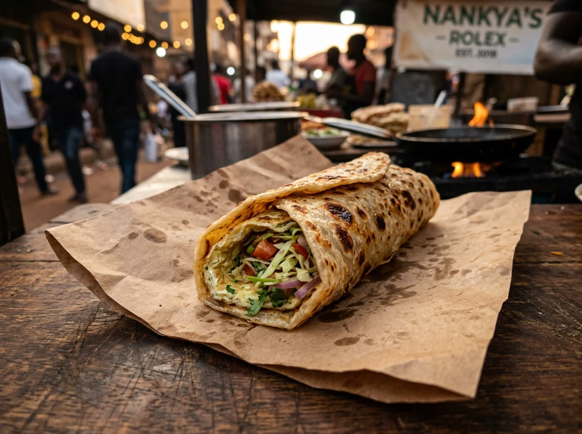 ロレックスの起源は1990年代のカンパラの路上です。当時、インド系ウガンダ人コミュニティが食べていたチャパティが一般に広まり始めました。ある屋台の店主が「チャパティで卵を巻いてくれ」と客に頼まれたのが始まりとされています。