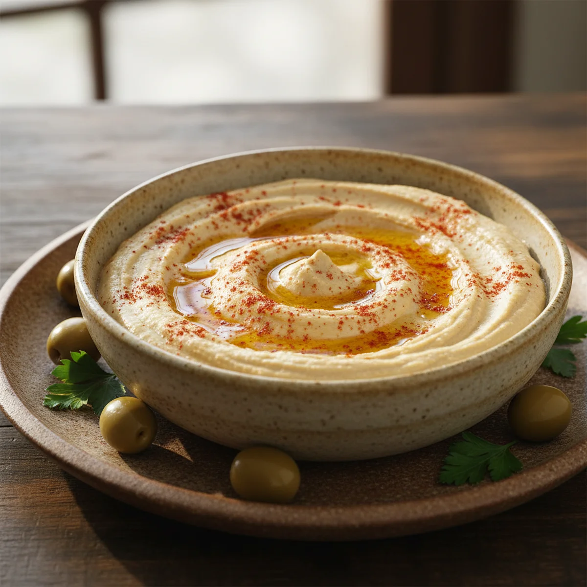 「フムス」というアラビア語は文字通り「ひよこ豆」を意味します。正式名称は「フムス・ビル・タヒーナ(ひよこ豆のタヒニ和え)」ですが、日常会話では単に「フムス」と呼ばれています。中東の家庭では朝食から夕食まであらゆる食事に登場し、パンやピタに添えて食べるのが基本です。